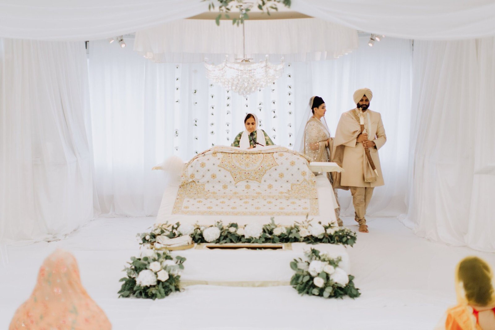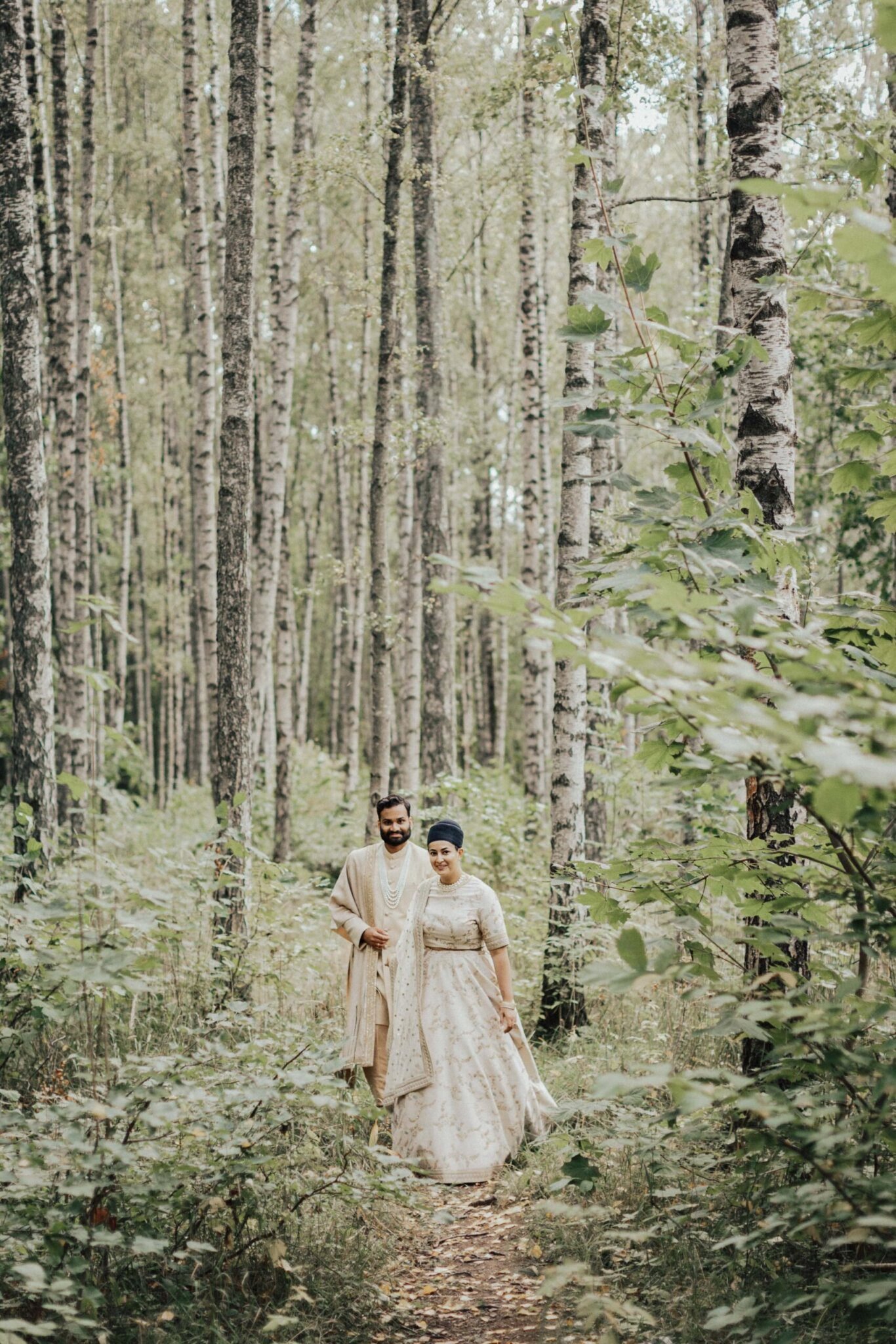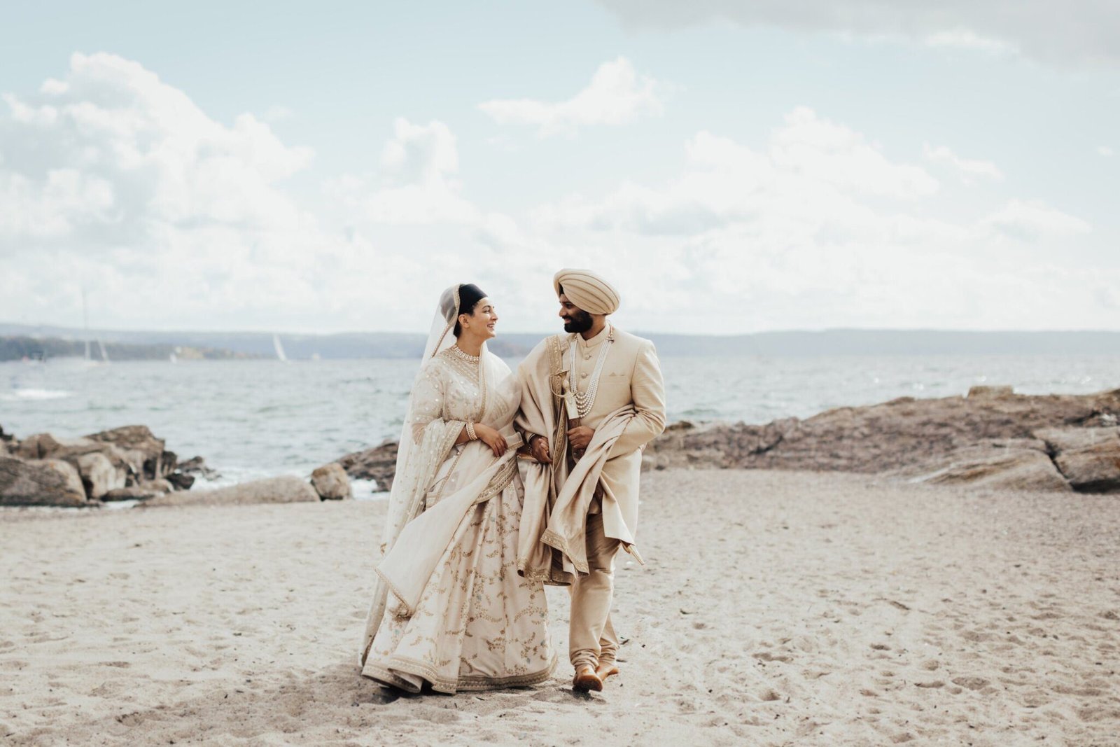 a turban, usually a male enclave. It serves as both a way of life and a symbol of personal faith for her. In a rare minimalist Sabyasachi silk lehenga, Prableen looked striking while Nirusan aced a Sabyasachi sherwani.