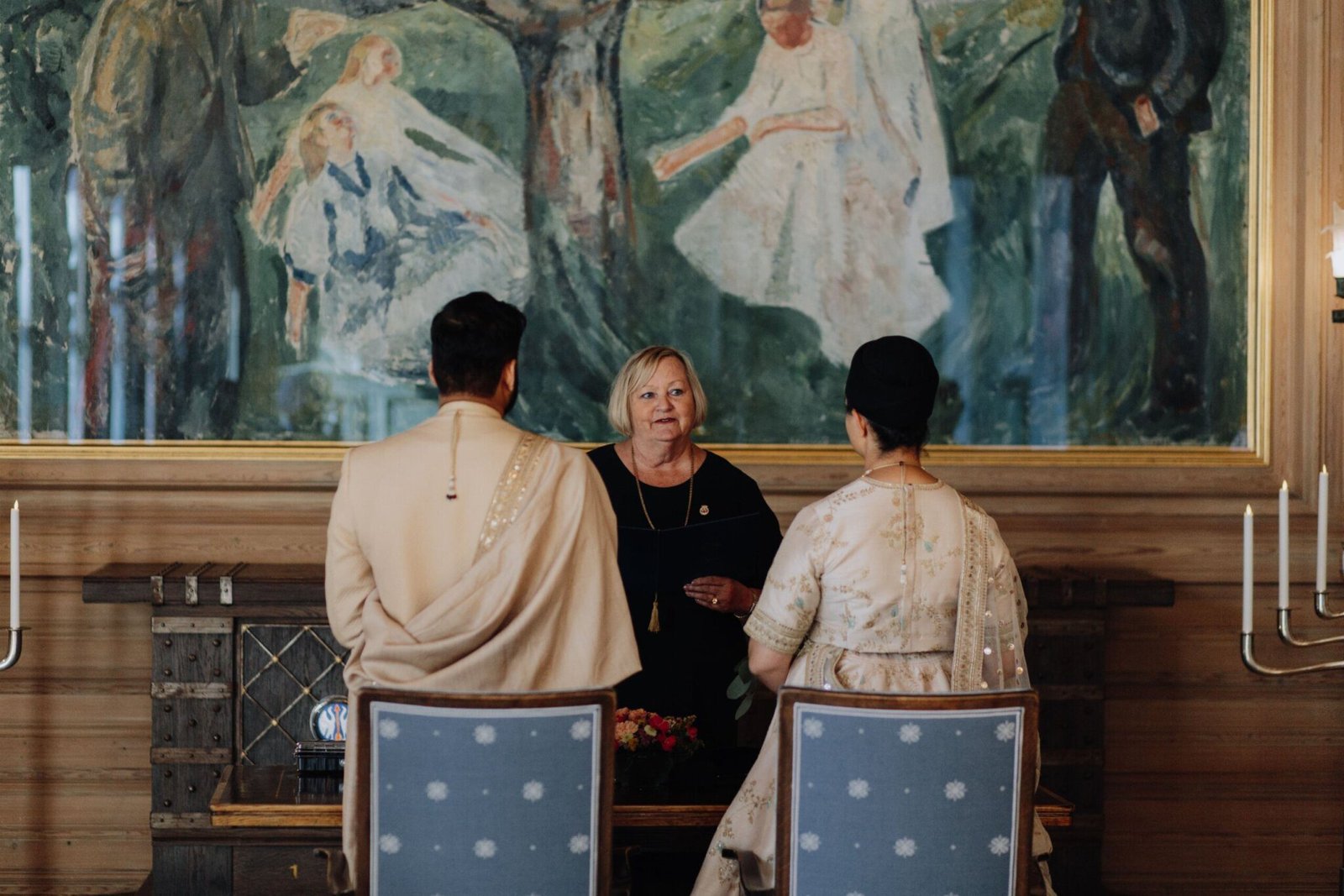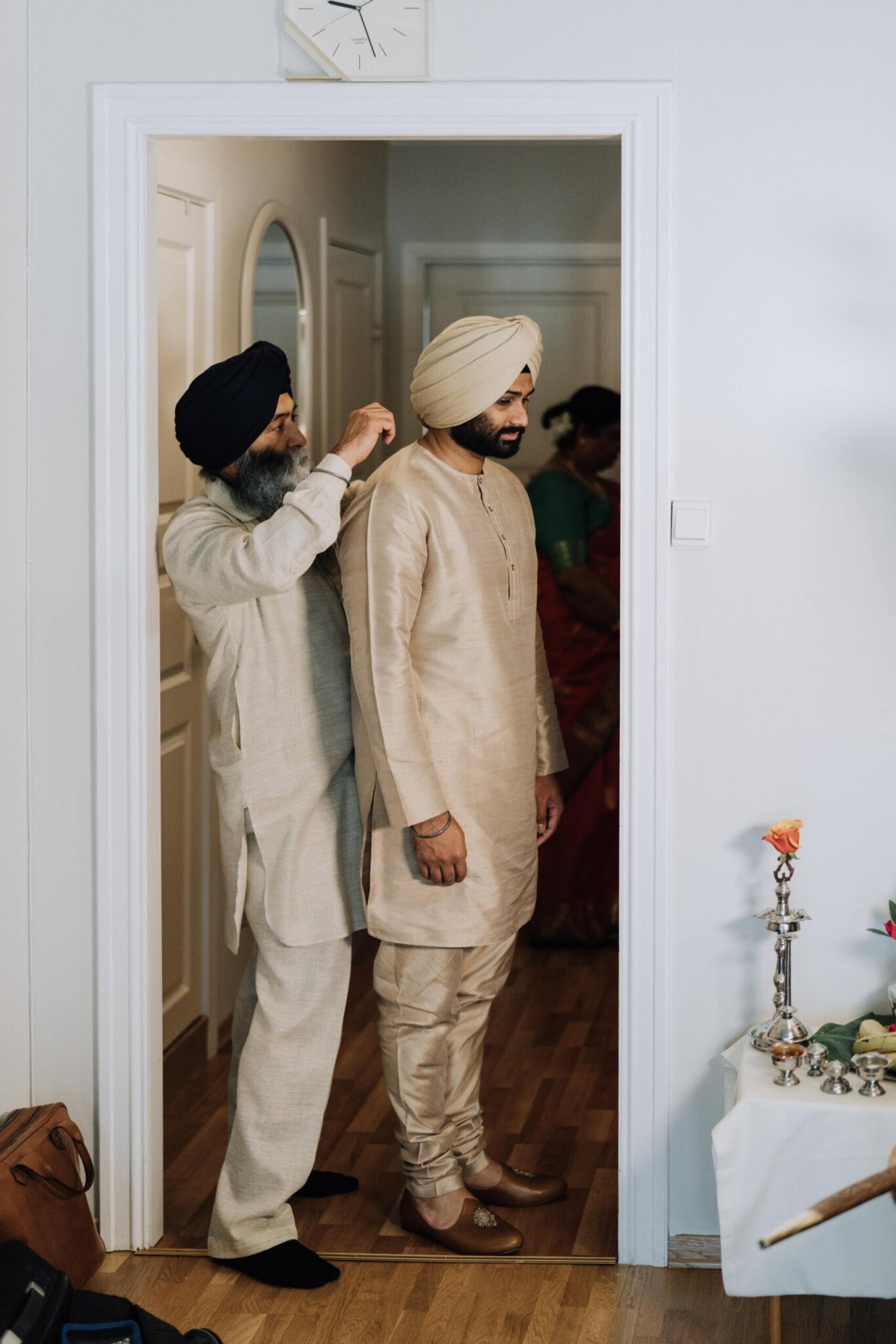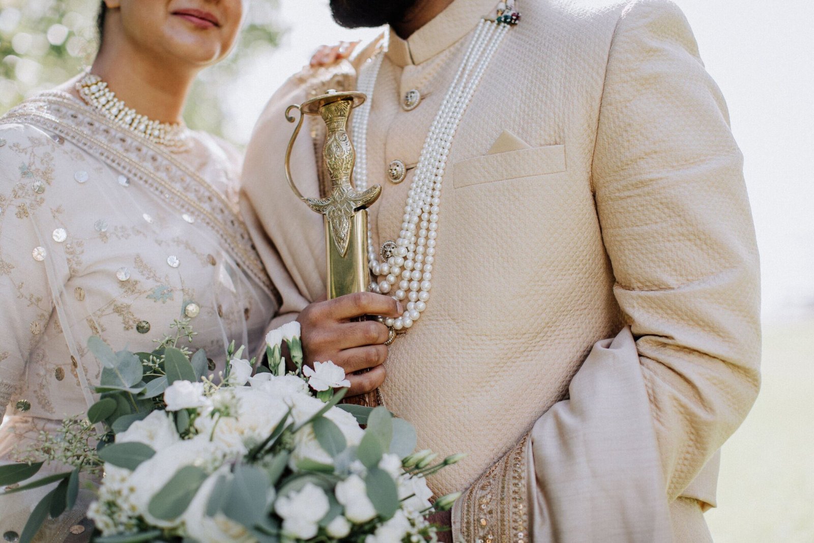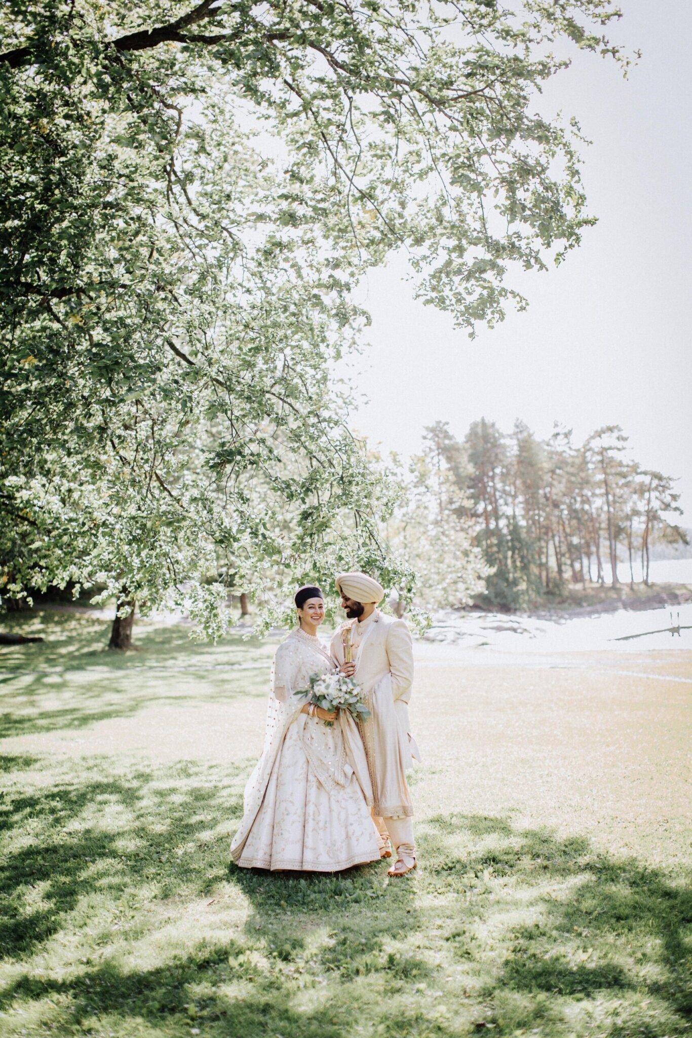 a turban, usually a male enclave. It serves as both a way of life and a symbol of personal faith for her. In a rare minimalist Sabyasachi silk lehenga, Prableen looked striking while Nirusan aced a Sabyasachi sherwani.
